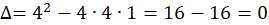 Delta jest równa zero, więc funkcja ma jedno miejsce zerowe.
