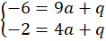 Zauważ, że do funkcji należą punkty (1, -6) i (6, -2), więc możesz ułożyć układ równań: