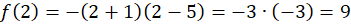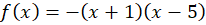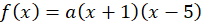 Miejscami zerowymi tej funkcji są -1 i 5, podstaw je do wzoru postaci iloczynowej: