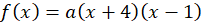 Miejscami zerowymi tej funkcji są -4 i 1, podstaw je do wzoru postaci iloczynowej: