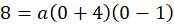 Funkcja przyjmuje wartość 8 dla argumentu 0, podstaw te współrzędne do wzoru i oblicz wartość współczynnika a: