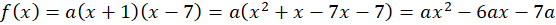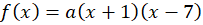 Miejscami zerowymi tej funkcji są -1 i 5, podstaw je do wzoru postaci iloczynowej: