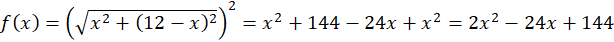 Przyjmij, że x to bok prostokąta, wtedy drugi bok to 12 – x. Przekątną prostokąta oblicz z twierdzenia Pitagorasa: