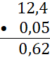 W tym zadaniu sprawdź, czy iloczyn liczb 0,05 i 12,4 jest równy 0,62.