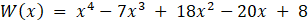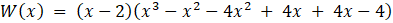 | W(x):(x-2) | 1 | -7 | 18 | -20 | 8 |