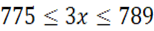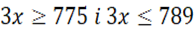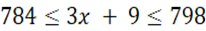 W tym zadaniu należy znaleźć trzy liczby podzielne przez 3, których suma jest większa od 784 i równocześnie nie większa od 798.