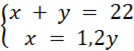 W tym zadaniu należy ułożyć oraz rozwiązać układ równań na podstawie wiadomości, że w pewnej klasie jest x dziewcząt i y chłopców, w sumie 22 uczniów. Dziewcząt jest tam o 20% więcej niż chłopców.