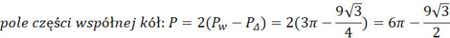 Oblicz pole części wspólnej kół ograniczonych okręgami o równych promieniach, z których jeden ma środek o podanych współrzędnych, a drugi opisany jest podanym równaniem.