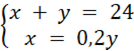 Zapisujemy dane warunki z zadania w postaci układu równań, które następnie rozwiązujemy metodą podstawiania: