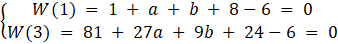 Czyli wielomian W(x) musi mieć pierwiastki dla x = 1, x = 3. Zgodnie z twierdzeniem Bezouta, wielomian