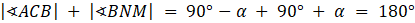 Więc suma przeciwległych kątów w czworokącie BCMN wynosi: