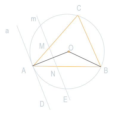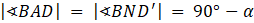 Ponieważ proste a i m są równoległe to kąty BAD i BND’ są kątami odpowiadającymi: