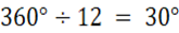 Tarcza zegara podzielona jest na 60 minut, zatem cała tarcza tworząc kąt pełny -
