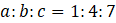 Wyznacz pole trójkąta jeśli punkty A, B, C podzieliły okrąg o promieniu 2, na łuki w stosunku a:b:c=1:4:7.