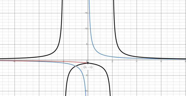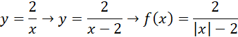 Wykres narysujemy metodą przekształceń, czyli zaczynamy od podstawowego wykresu, który następnie przesuwamy o odpowiedni wektor, a następnie obkładamy argument modułem, który spowoduje, że funkcja zostanie odbita symetrycznie względem osi OY, czyli lewa strona będzie lustrzanym odbiciem prawej. Na rysunku zielony to podstawowy, niebieski po przesunięciu, czerwony po obłożeniu argumentu modułem.