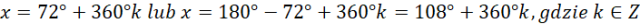 W tym zadaniu musisz znaleźć kąty, których miara jest większa od 0°, ale mniejsza od 360°, a sinus wynosi 0,95, używając wzorów redukcyjnych.