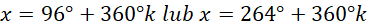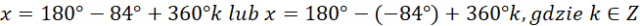 W tym zadaniu musisz znaleźć kąty, których miara jest większa od –270°, ale mniejsza od 180°, a cosinus wynosi –0,1, używając wzorów redukcyjnych.