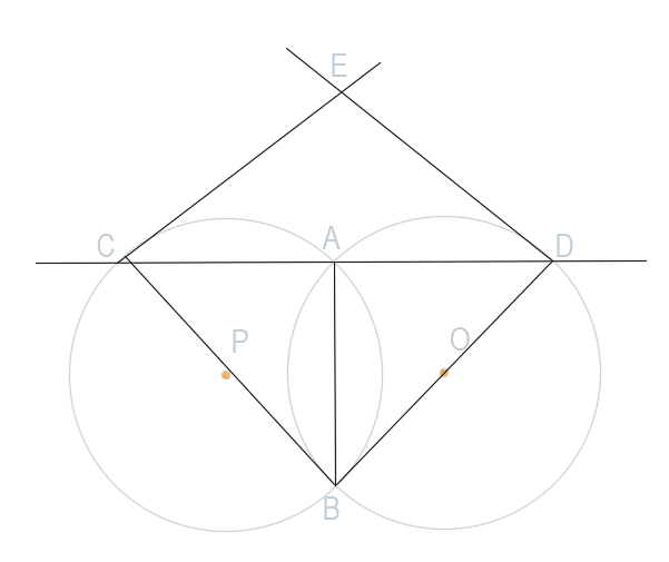 Dane są dwa okręgi, przecinają się one w punktach A oraz B. Z punktu A poprowadzono prostą przecinającą jeden z okręgów w punkcie C i drugi w punkcie D. Styczne w punktach C i D do obu okręgów mają punkt wspólny E. Udowodnij, że można opisać okrąg na czworokącie BDEC.