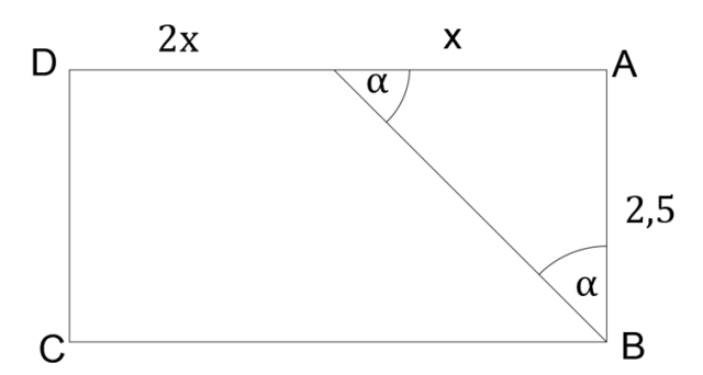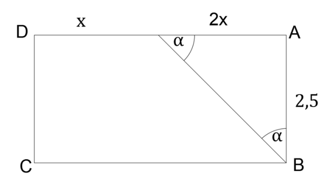 Dany jest prostokąt, w którym krótszy bok ma długość 2,5 cm. Dłuższy bok został podzielony przez dwusieczną kąta w stosunku 1:2. Jaki jest obwód tego prostokąta?