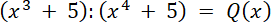 Zauważ, że stopień dzielnika jest większy od stopnia dzielnej, a więc iloraz będzie równy 0, a reszta będzie równa dzielnej.