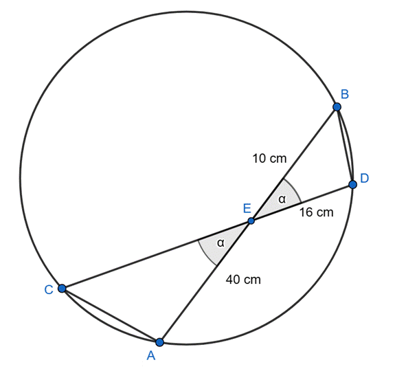 , wiedząc, że w kole poprowadzono cięciwy AB i CD, które przecięły się w punkcie E. Pole trójkąta AEC jest o