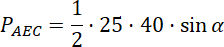 Zapisz pole trójkąta AEC przy pomocy kąta między dwoma bokami i wyznacz miarę tego kąta.