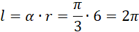 Oblicz długość łuku korzystając ze wzoru na miarę łukową kąta środkowego: