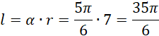 W tym zadaniu musisz powiedzieć, jakiej długości jest krótszy z łuków tworzonych na okręgu przez kąt środkowy, jeśli promień okręgu ma długość 7, a kąt wartość