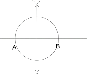 Narysuj okrąg z punktu przecięcia prostych, przez punkty A i B