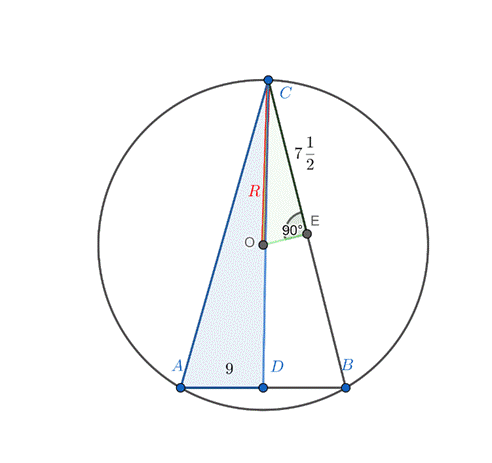 3. wyznaczyć promień okręgu opisanego na tym trójkącie korzystając z podobieństwa odpowiednich trójkątów prostokątnych.