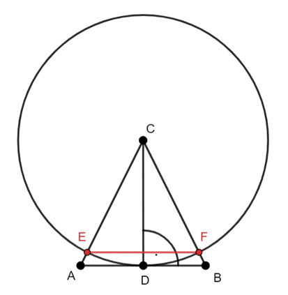 |CD| = r = 3–promień okręgu i wysokość trójkąta równoramiennego