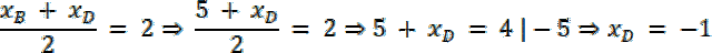Punkt S(2, 4)–środek przekątnej AC i BD, więc: