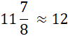 Wybierz takie liczby, które mają 11 całości i część ułamkową większą lub równą 0,5, lub liczby o 12 całościach i części ułamkowej mniejszej od 0,5. Możesz podać liczby dziesiętne lub liczby mieszane.