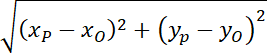 W celu obliczenia odległości między punktami O(xO, yO) i P(xP, yP) skorzystaj z następującego wzoru: |OP| =