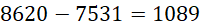 Liczba 8620 jest o 1089 większa od 7531.