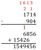 W pierwszym kroku musisz obliczyć iloczyn liczby, zapisanej nad drugą liczbą, z liczbą jedności liczby poniżej. Zapisz wynik pod kreską. Następnie pomnóż liczbę zapisaną nad druga liczbą, przez liczbę dziesiątek i wynik zapisz pod poprzednim wynikiem, jednak tak, aby liczba jedności drugiego wyniku pokrywała się z liczbą dziesiątek drugiego. Powtórz te czynności odpowiednią ilość razy, a na końcu wykonaj dodawanie, którego wynik będzie wynikiem mnożenia. Wynik z mnożenia 1714 × 0 możesz pominąć, ponieważ jest on równy 0, czyli nie zmieni wyniku.