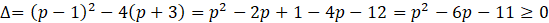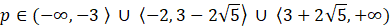 Rozwiązaniem zadania są te wartości parametru p, które należą do obu wyznaczonych przedziałów.