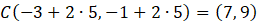 Aby wyznaczyć współrzędne punktu znajdującego się na drugim końcu przekątnej, ustal najpierw współrzędne wektora łączącego wierzchołek z punktem przecięcia przekątnych. Przekątne w równoległoboku przecinają się w połowie, aby wyznaczyć drugi wierzchołek do współrzędnych znanego wierzchołka, należy dodać dwukrotnie współrzędne wyznaczonego wektora.
