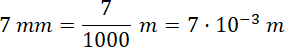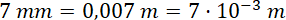 W tym zadaniu musisz zamienić 7 milimetrów na metry i wynik zapisać w notacji wykładniczej.