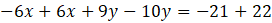 Współczynniki przy zmiennej y są przeciwne, więc dodajemy do siebie obie strony obu równań: