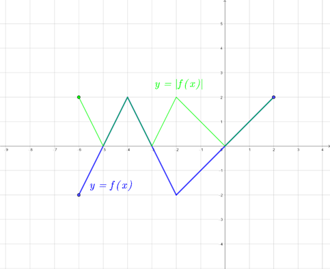 otrzymamy w ten sposób, że ta część wykresu funkcji f, która znajduje się nad osią x, pozostanie niezmieniona, a pozostałe części wykresu f zostaną odbite symetrycznie względem osi x.