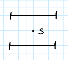 Narysuj odcinek, punkt, a następnie odcinek symetryczny względem tego punktu.