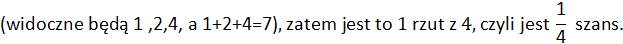 Suma liczb na widocznych trzech ścianach wyniesie 7, jeśli kostka wyląduje na 3
