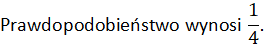 Za zdjęciu obok jest widoczna czterościenna kostka ze ścianami ponumerowanymi w kolejności: 1, 2, 3 i 4. Oblicz prawdopodobieństwo, że po rzuceniu tą kostką: