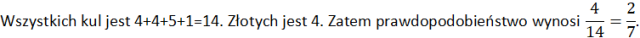 Wybieramy losowo jedną kulę. Oblicz prawdopodobieństwo, że to będzie złota kula.