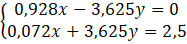 0,928x - 3,625y + 0,072x + 3,625y = 0 + 2,5