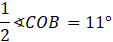 Dwusieczna dzieli kąt na pół. Miara kąta między dwusiecznymi kątów AOB i BOC będzie równa połowie sumy tych kątów
