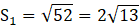 Najpierw obliczamy długość przeciwprostokątnej głównego trójkąta. Długość pierwszej z środkowych również obliczamy z Pitagorasa. Podobnie z drugą środkową.
