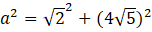Bok a jest przeciwprostokątną trójkąta prostokątnego, jej długość należy obliczyć z twierdzenia Pitagorasa.