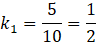 Podane trójkąty są podobne z cechy BKB oraz ich skala podobieństwa k jest równa